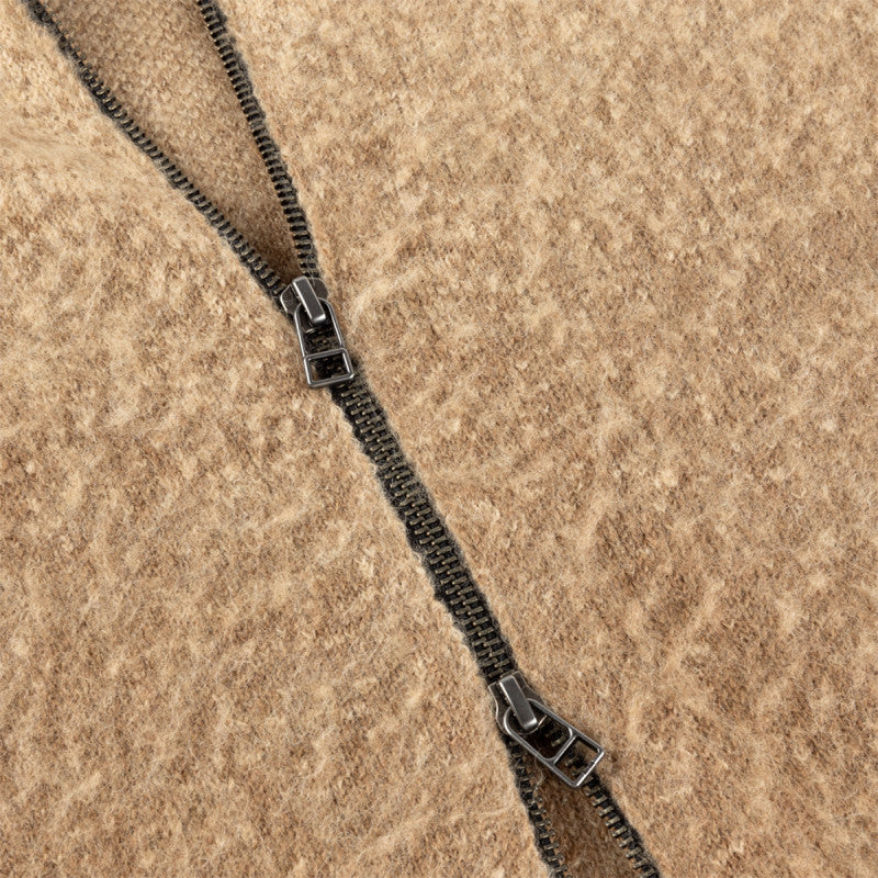 Dime Mohair Double Zip Knit Sweater Camel